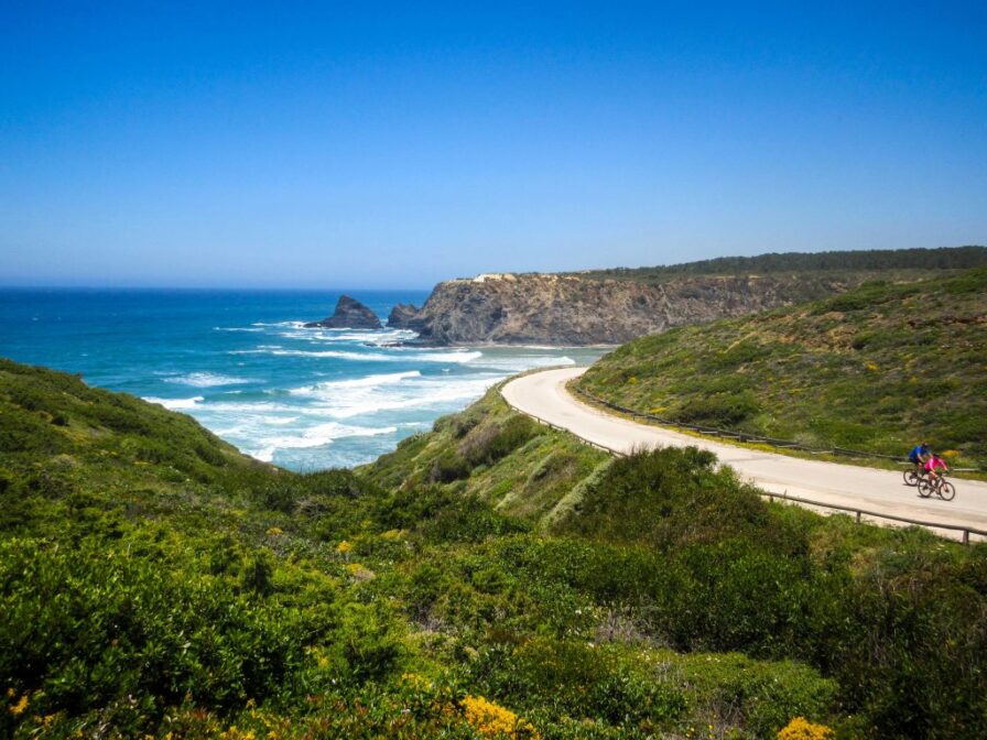 After a memorable homemade breakfast at the 3 Marias guesthouse, you’ll continue your cycling holiday by biking through the Vicentine Coast Natural Park, which is more than 100 kilometers long and is Portugal’s largest stretch of protected coastline. The ride today is extremely coastal, with lots of opportunities to stop and take photos of Portugal’s most scenic beaches. In addition to having yet another gourmet picnic lunch at a beautiful coastal beach location, you’ll cycle past the Cabo Sardão Lighthouse and dozens of windswept sea cliffs before arriving at the Touril Country House, where grazing donkeys welcome you to your luxury accommodation in the countryside. Sip a lemonade at the bar or take a dip in the saltwater swimming pool.