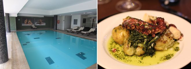 The Vila Galé Douro is a large, modern hotel situated on the south side of the Douro River in beautiful Régua, Portugal. The hotel features large, contemporary rooms, a swimming pool, Jacuzzi, dining room, and one of the best riverside patios in all of Portugal. If the weather is nice, make sure you grab your breakfast from the buffet and then eat outside on the patio. The view of the river from there is quite spectacular!